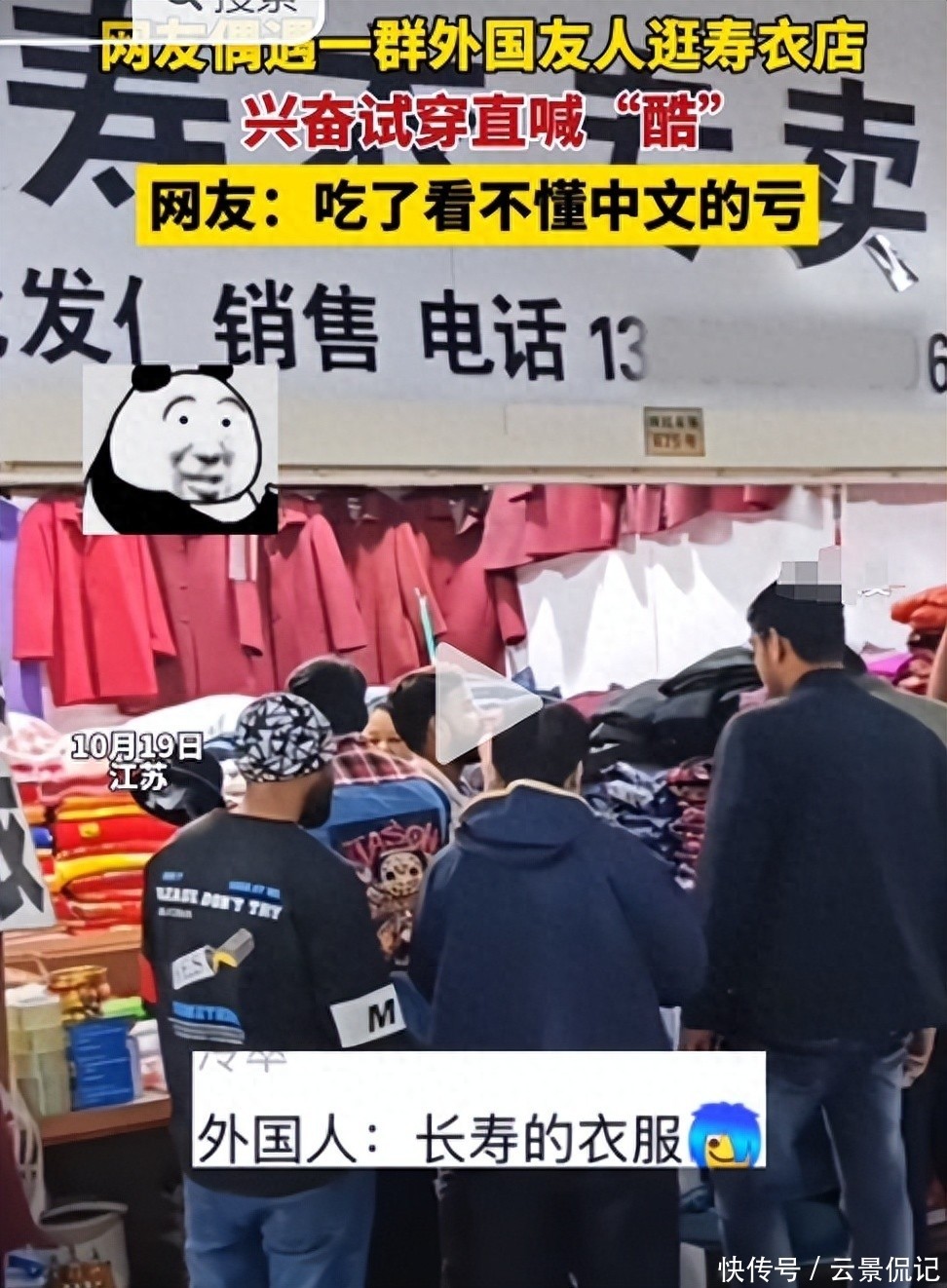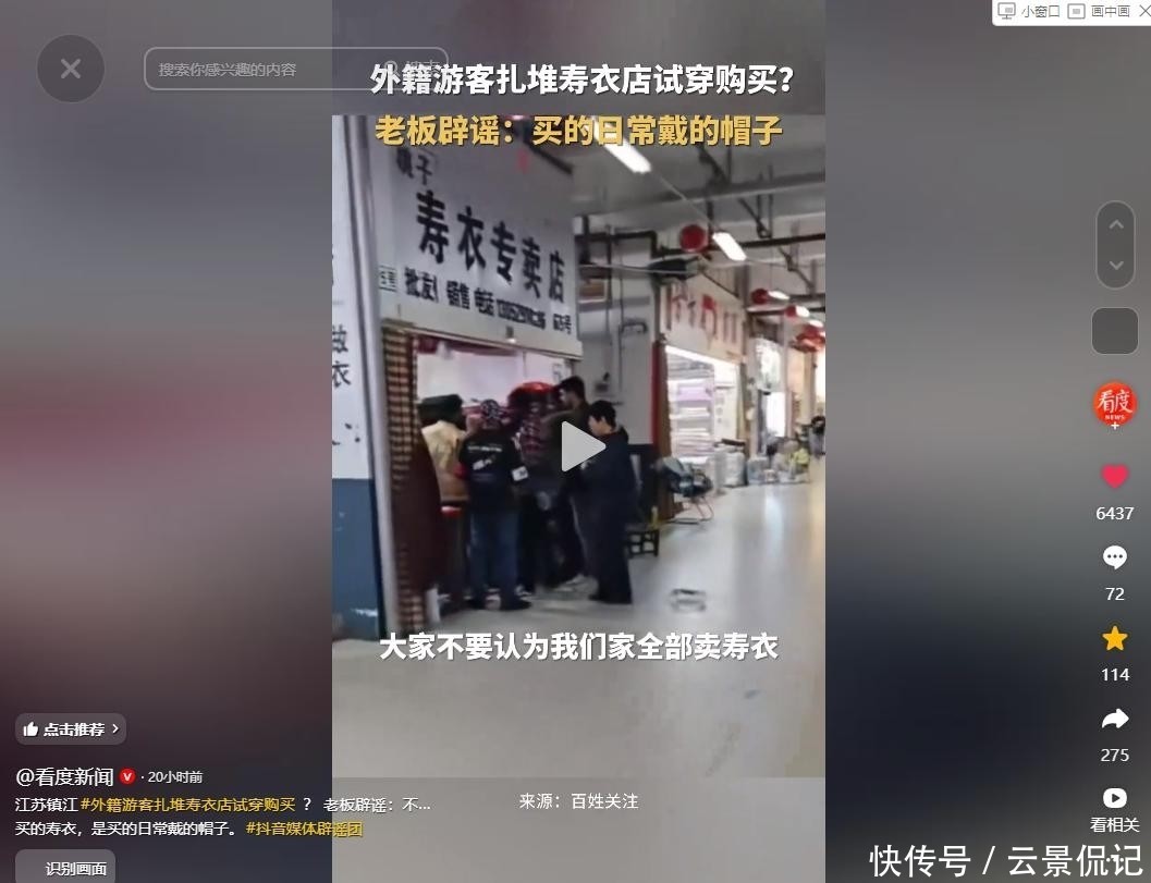 【2】扬中市融媒体中心,2025-10-20,“外籍游客扎堆寿衣店试穿购买,迷惑行为看懵路人,老板娘回应”.