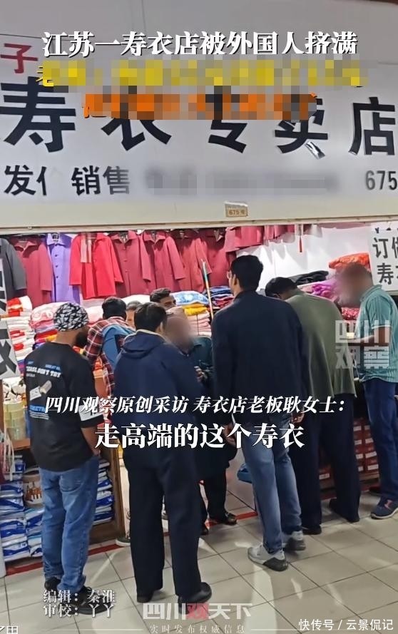 最近,在江苏一家寿衣店门口,几名外国游客围在门前挑选商品,画面一经曝光,立刻让国内网友惊掉下巴。