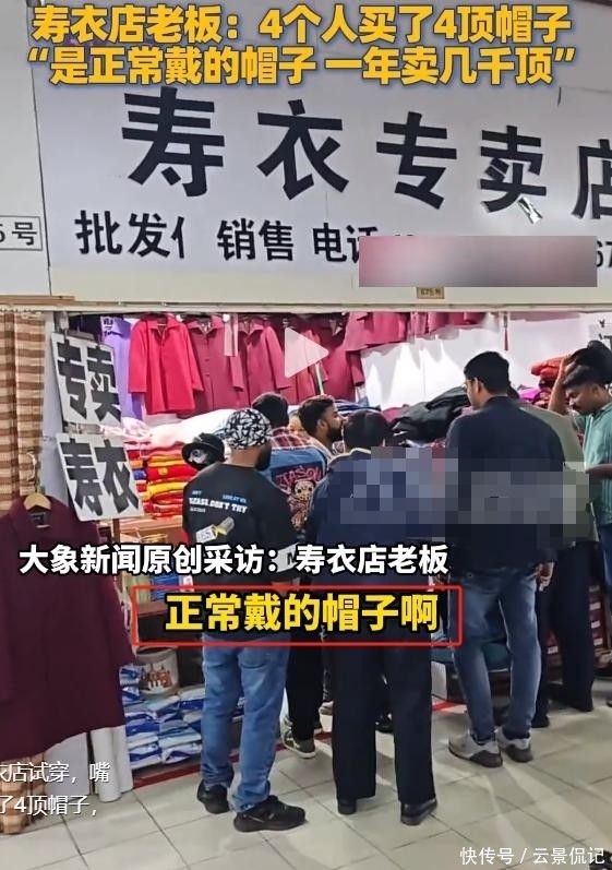她强调:那群印度游客根本不是冲着寿衣来的,只是天气转凉,想买几顶保暖的帽子。