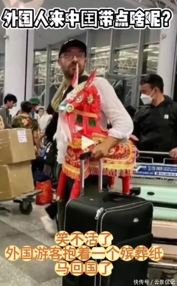 另有一张广为流传的照片显示,一名外国男子在机场安检时怀抱一只大红色纸扎马,小心翼翼如同珍宝,而这件物品的真实用途,懂的人都懂。